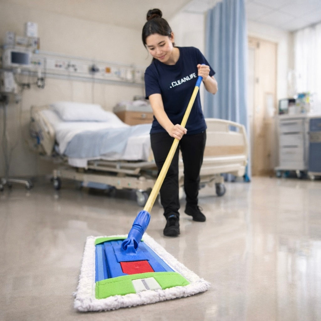 Designed with a slim and lightweight frame, the mop can easily reach under beds, furniture, and tight spaces, making it ideal for use in hospitals, hotels, schools, offices, and commercial facilities.